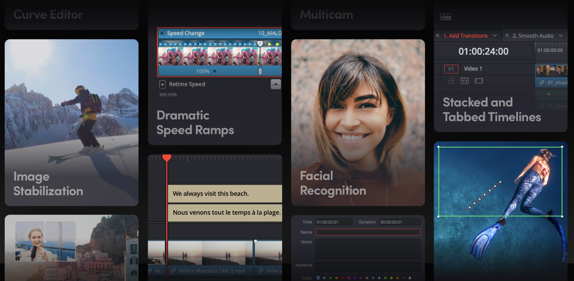 *『Davinci Resolve剪輯-剪輯功能操作篇』是一門適合入門且課程章節豐富,有近5小時的課程內容,讓您可以完整學習所有剪輯功能。